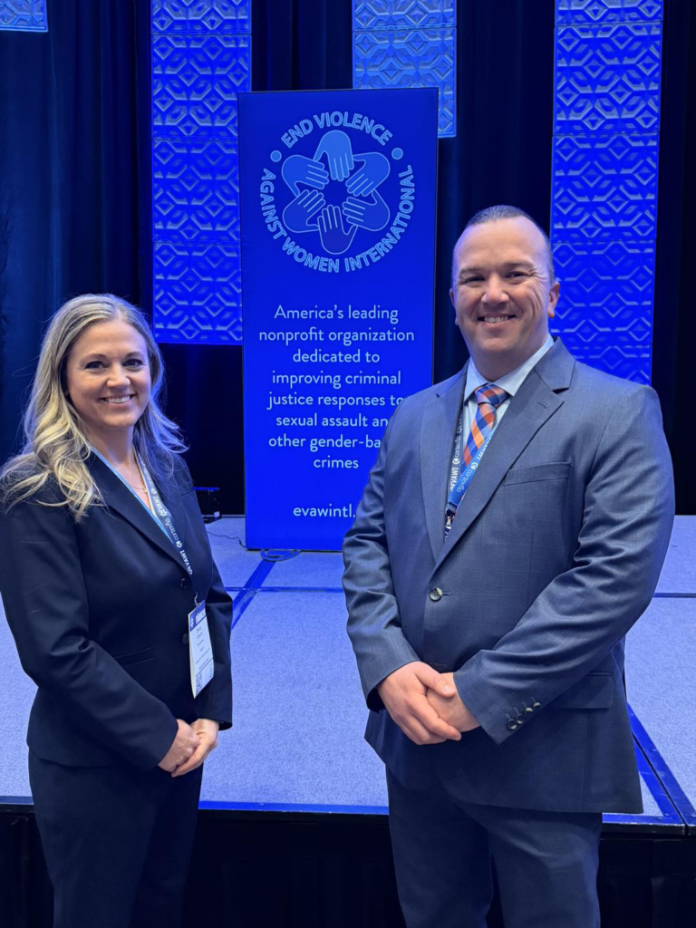 Captain Erica Oldham and Sgt. Nathan Kinate were named 2026 Professional Impact Award recipients by End Violence Against Women International, an honor that recognizes professionals whose work has significantly influenced their community’s response to violence against women.